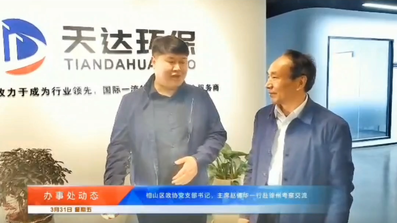 3月31日,安徽省淮北市相山區(qū)政協(xié)主席趙德華一行領(lǐng)導(dǎo),蒞臨江蘇天達環(huán)保設(shè)備有限公司考察交流,天達環(huán)保負責人張羅通熱情接待,并表示熱烈歡迎。